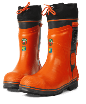 • Cizme confortabile prelucrate manual, cu protectie la fierastrau concepute pentru programe prelungite de lucru pe orice tip de vreme.  Prevazute cu bombeu din otel, protectie la actiunea ferastraului, protectie pentru glezna, sanuri pe calcaie si talpa antialunecare ce permite fixarea de crampoane. Calcai intarit care faciliteaza echiparea si scoaterea cizmei, iar partea superioara este intarita suplimentar. Captuseala din bumbac.
